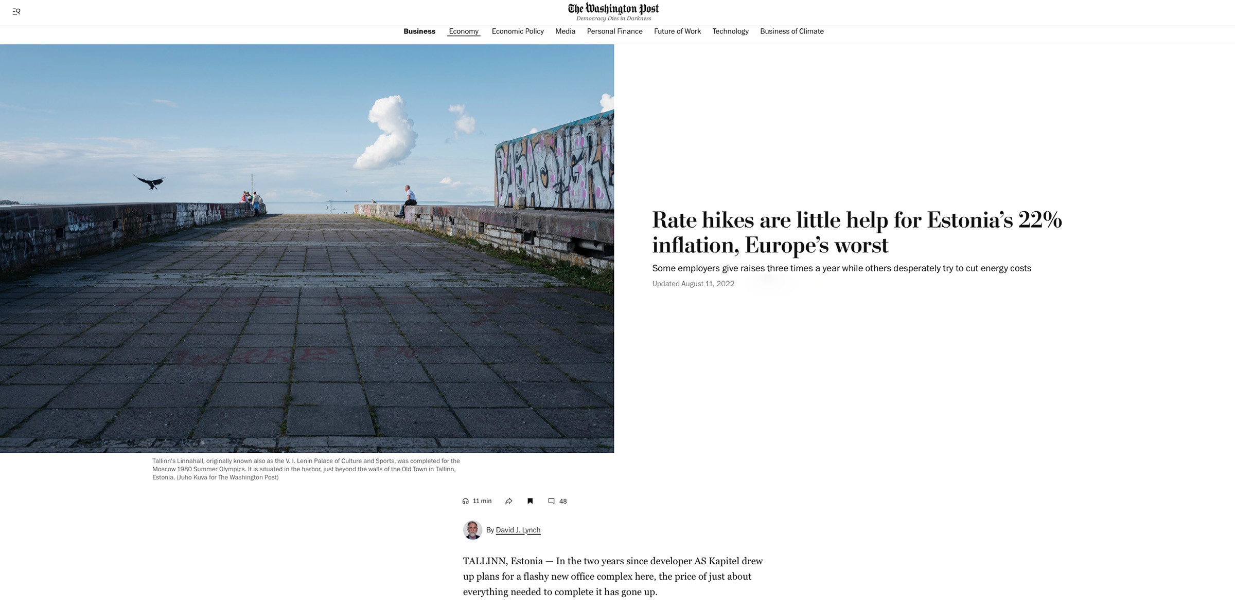 THE WASHINGTON POST / HIGH INFLATION IN ESTONIA