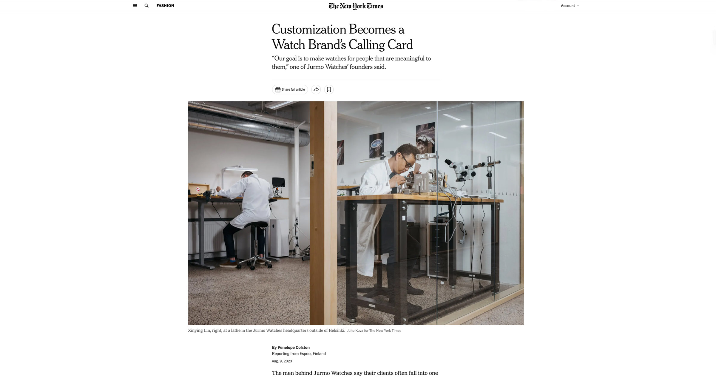 THE NEW YORK TIMES / JURMO WATCHES